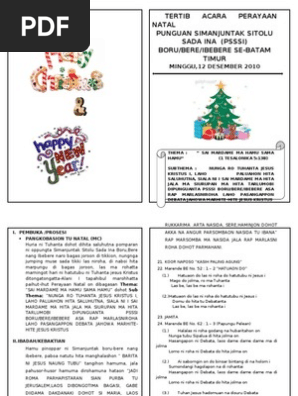 Documents similar to tertib acara natal bahasa batak. Natal dinas pendidikan kabupaten simalungun, sumatera utara @auditorium t.johan garingging universitas efarina. Menjelang perayaan natal di tahun ini, kita disibukkan dengan berbagai persiapan untuk memeriahkan perayaan tersebut. Tertib acara natal ina hkbp dalam bahasa batak lengkap dengan liturgi dan prolok / the romp family paling baru liturgi natal parhalado. Metode yang digunakan dalam penelitian ini adalah metode deskriptif penggunaan yang lazim.idiom dalam bahasa batak.